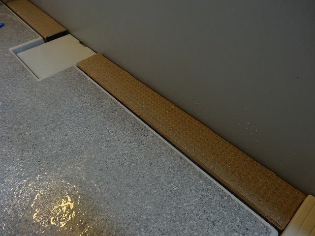 そのままでは天板が滑るので、ノンスリップのクッションフロアを貼りました。