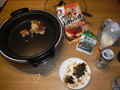 なので、帰ったら作ってくれているものを温めるのも待てないのでチンもせずにそのまま食べるのですが、先日は自分で作らなければならない(焼くだけですが)お好み焼きだったのです。