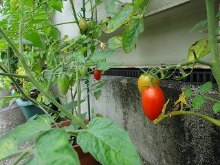会社でのミニ菜園・・・アイコようやく実を付け始めました。