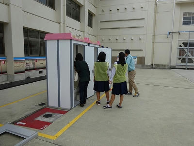 弊社も、トイレの組立等で町内会の人々に体験していただきました。