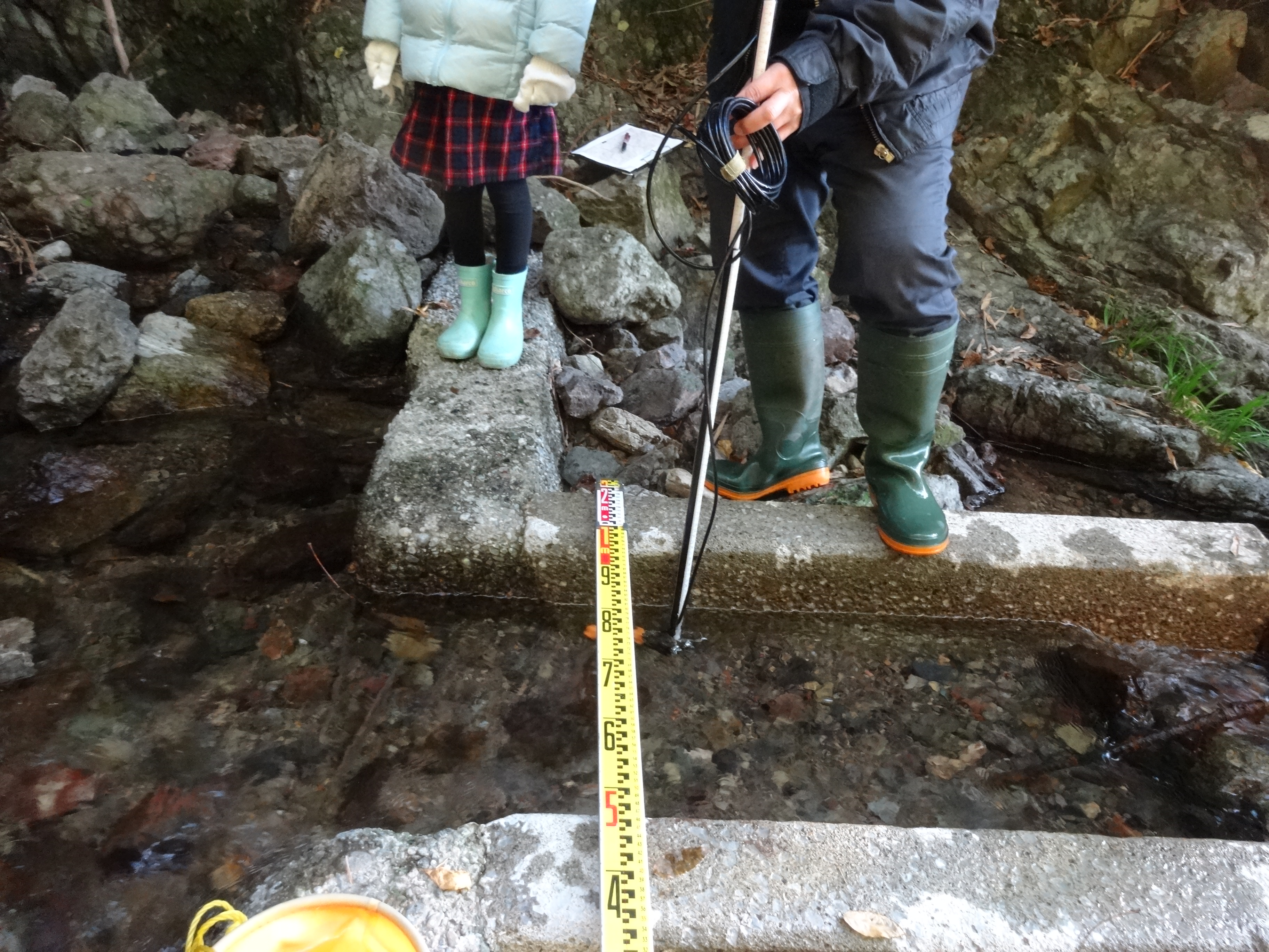 幅50cmなので約10cm間隔6ヶ所の水量を測定します。